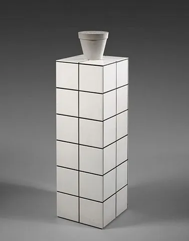 - Sculpturale objecten waarin keramische tegels en klassieke vormen (zoals vazen of stèles) zijn gecombineerd