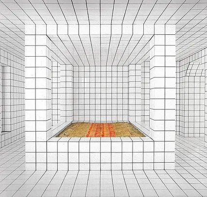 - Installaties met witte keramische tegels in strakke rastervorm, zoals 'La Maison de La Celle-Saint-Cloud' van Raynaud (volledig betegeld interieur)