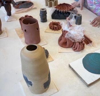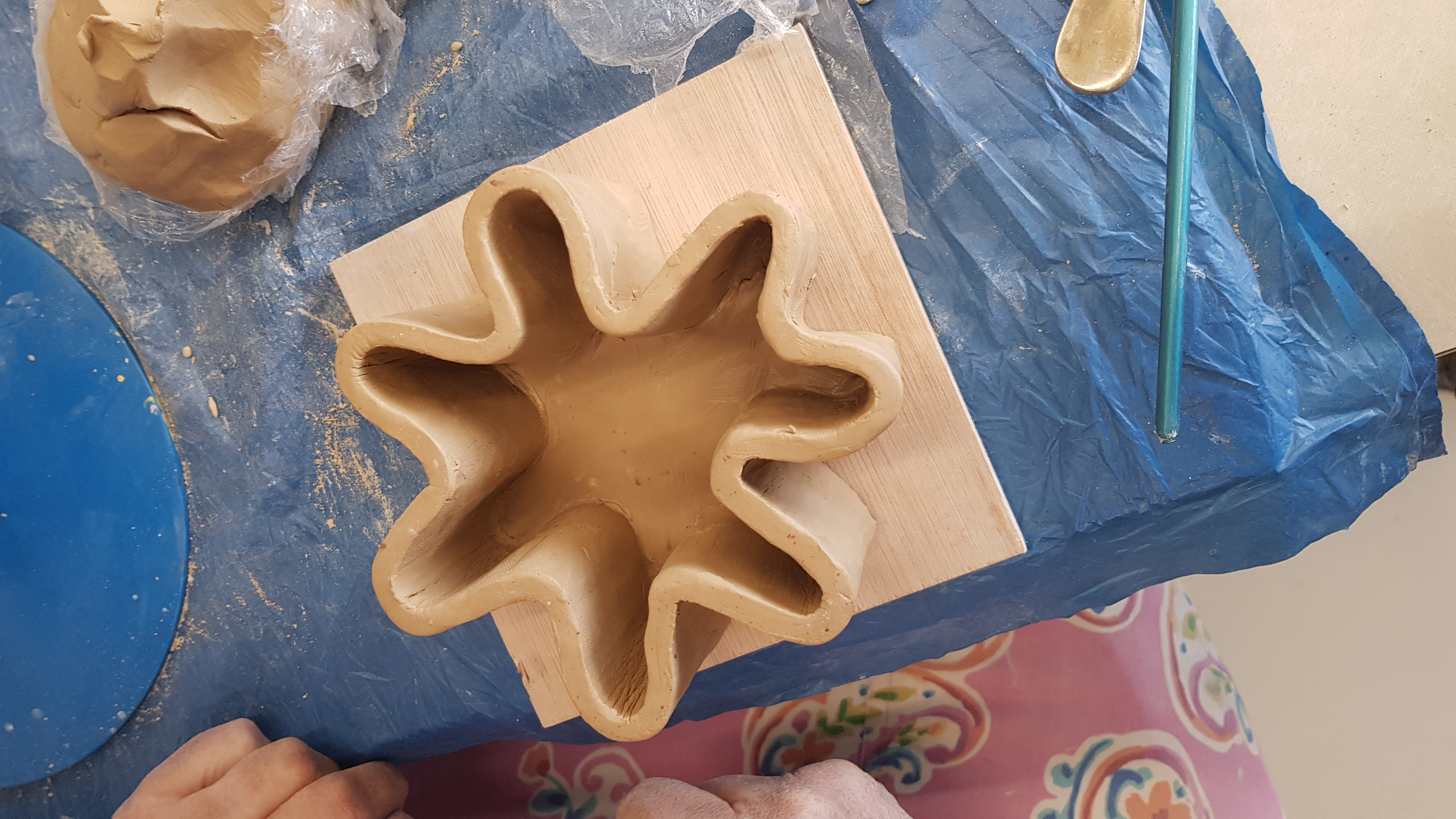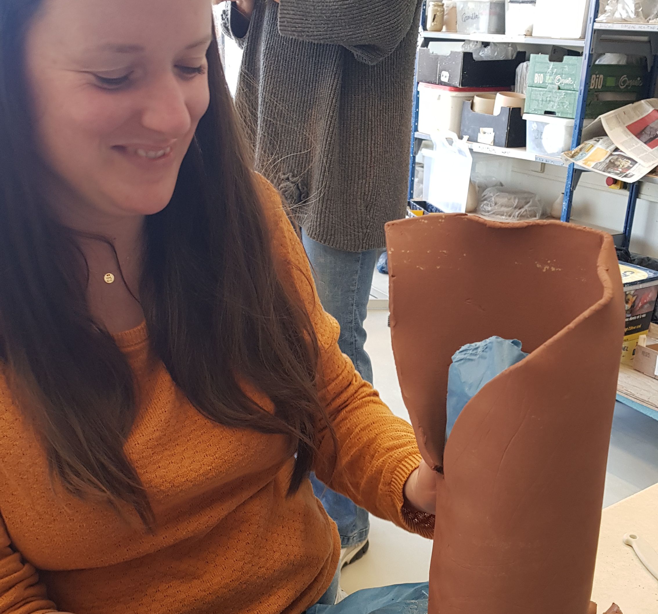 Tijdens deze workshop gingen we aan de slag met technieken om klei op het juiste moment te plooien, vouwen en kreukelen. Naast de juiste techniek is de juiste timing ook bepalend voor een goed eindresultaat.