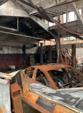 De verwoestende brand vormt het extreme eindpunt van versneld verval. Waar tijd meestal langzaam werkt, condenseert vuur het proces tot minuten of uren. Wat jarenlang opgebouwd werd, kan in één nacht verdwijnen. Toch laten de resten — verkoold hout, gesprongen glas, as — zien dat vernietiging ook transformatie is. Materie verandert van toestand, niet van bestaan.