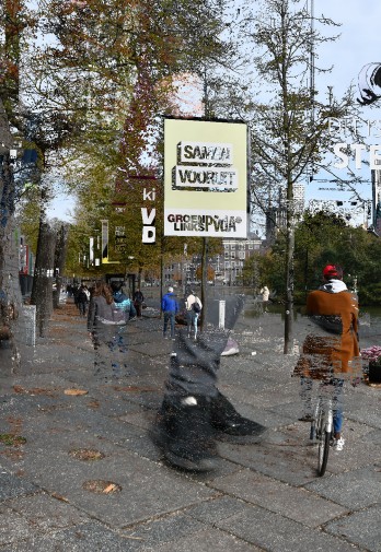 Een fotografische interpretatie rondom het Haagse Binnenhof. Een overallview vanaf de 'kijksteiger' met doorkijk tussen de mazen van het vangnet.