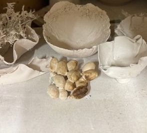 Geselecteerde organische objecten werden bekleed met vloeibaar porselein. - Vormgeving met bouwmateriaal