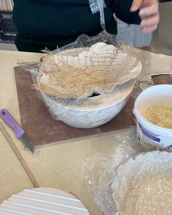 Wil je met een geslaagd werk naar huis of ga je mee op avontuur? Het werd een succesvolle reis. Met een volle bezetting ontdekten tien deelnemers unieke eigenschappen van speciaal geprepareerd porselein. We verkenden Audrey Blackman, zonder toevoegingen en met cellulose (papierklei), kant en klare gietporselein, PK155 en de scarva vlasporseleinmassa E/S 600.