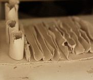 De beklede en deels gedroogde materialen werden vervolgens gebruikt als bouwelementen voor nieuwe vormen. - Werken met steunvormen en hulpmiddelen